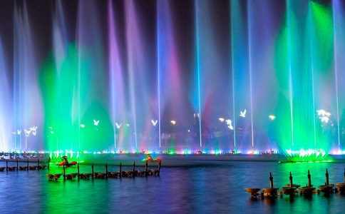 音樂噴泉隨著音樂變換,為城市的人們在夜間增添一份美輪美奐的視覺和聽覺的盛宴,是快節(jié)奏的城市生活夜間一項頗為浪漫閑適的娛樂項目