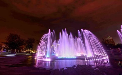 程控噴泉是按照預先編輯的程序變換噴水造型和燈光色彩強弱變化的噴泉。程序一般可以隨時修改,也可儲存多種程序,隨意調用。